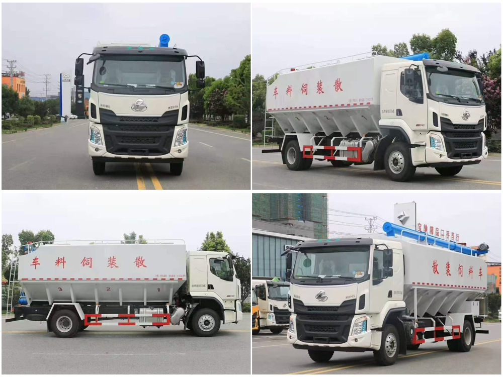散裝飼料車,又名散裝飼料運輸車,飼料運輸車。結構簡單、性能可靠、輸送量大、操控方便、機動性強、對物料無污染等特點,廣泛應用于各大中小型養殖企業的飼料的運輸。主要用于從飼料廠向畜牧場、養禽場及飼料加工用戶運輸散裝飼料成品或飼料生產原糧,同時它也可用來運輸某些無腐蝕性粉粒狀原料,如制藥廠粉料和糧庫周轉。