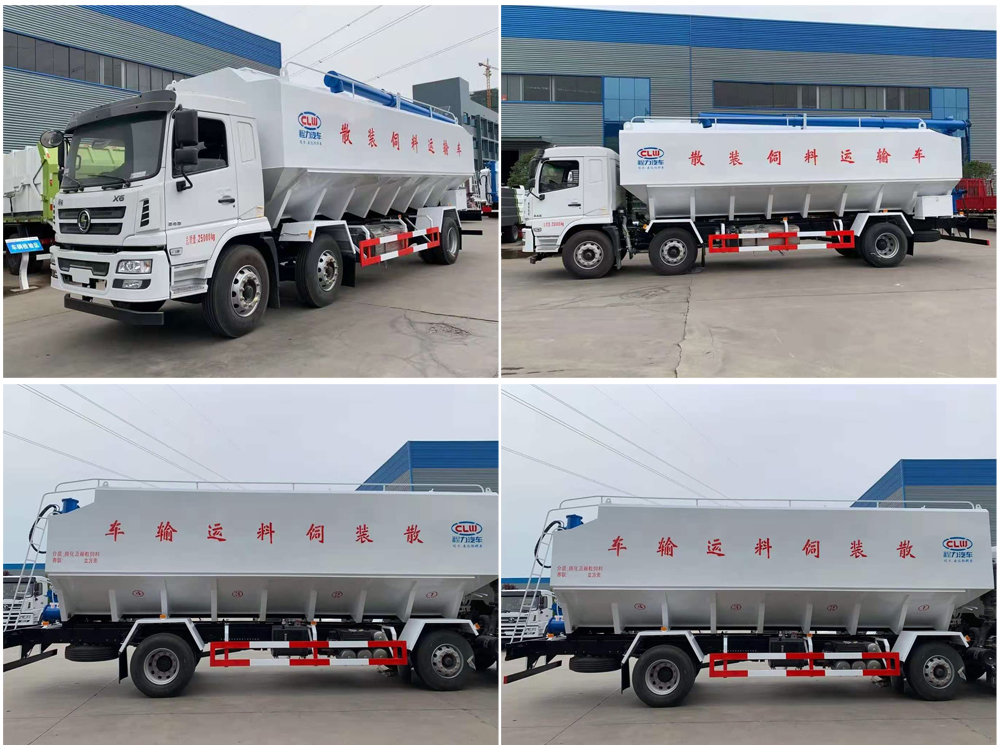散裝飼料車,又名散裝飼料運(yùn)輸車,飼料運(yùn)輸車。結(jié)構(gòu)簡(jiǎn)單、性能可靠、輸送量大、操控方便、機(jī)動(dòng)性強(qiáng)、對(duì)物料無污染等特點(diǎn),廣泛應(yīng)用于各大中小型養(yǎng)殖企業(yè)的飼料的運(yùn)輸。主要用于從飼料廠向畜牧場(chǎng)、養(yǎng)禽場(chǎng)及飼料加工用戶運(yùn)輸散裝飼料成品或飼料生產(chǎn)原糧,同時(shí)它也可用來運(yùn)輸某些無腐蝕性粉粒狀原料,如制藥廠粉料和糧庫周轉(zhuǎn)。