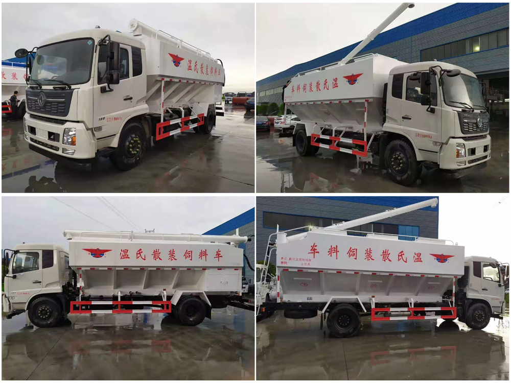 散裝飼料車,又名散裝飼料運輸車,飼料運輸車。結構簡單、性能可靠、輸送量大、操控方便、機動性強、對物料無污染等特點,廣泛應用于各大中小型養殖企業的飼料的運輸。主要用于從飼料廠向畜牧場、養禽場及飼料加工用戶運輸散裝飼料成品或飼料生產原糧,同時它也可用來運輸某些無腐蝕性粉粒狀原料,如制藥廠粉料和糧庫周轉。