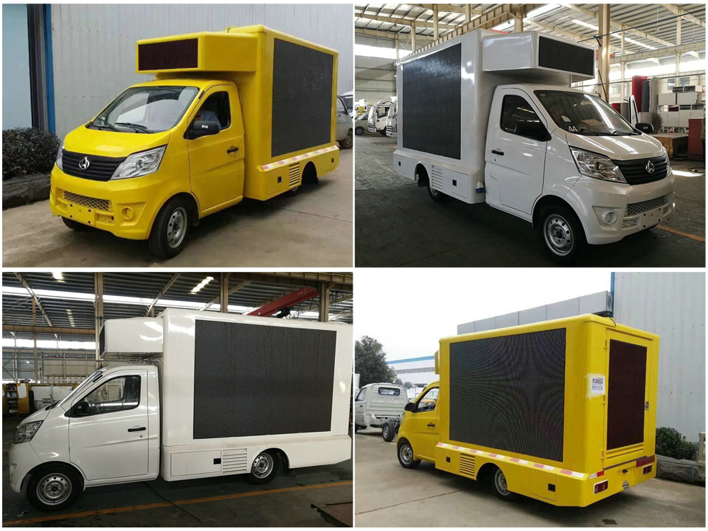 廣告車選裝配置:客戶可根據(jù)需求選裝屏幕清晰度(P10彩屏、P8彩屏、P6彩屏、P5彩屏、P4彩屏)、單面彩屏、雙面彩屏、雙面